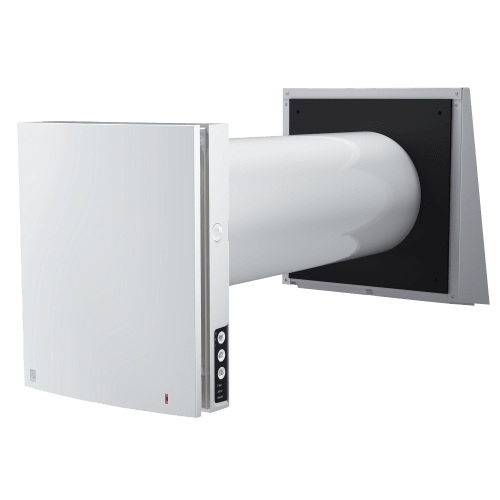 Romventilator Roomie One WiFi V2 gir ventilasjon med varmegjenvinning i deler av boligen eller i enkeltrom. Varmen gjenvinnes fra avtrekksluften i en keramisk varmegjenvinner som samtidig gir temperert og filtrert tilluft. Anbefalt å installere parvis eller med flere, avhengig av arealet som skal ventileres. Integrert WiFi gjør det enkelt å koble sammen flere ventilatorer som kommuniserer trådløst. Enkel igangkjøring, styring og sammenkobling via egen app. Leveres med tilkoblet strømledning og støpsel. Ved tynne vegger kan egne kapper som absorberer deler av lengden benyttes (tilbehør). Mulighet for pollenfilter som enkelt monteres/demonteres før og etter pollensesong. Utvendig kappe i grålakkert aluminium. Kan tilkobles eksterne sensorer. Kompatibel med smarthus-systemer