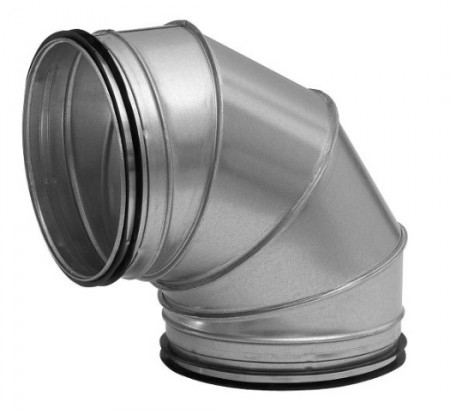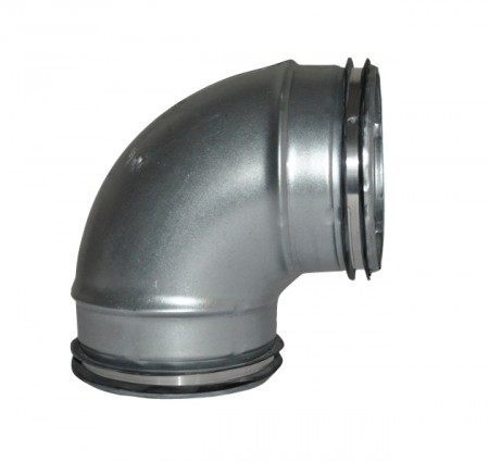 Kortbend 90° med pakning for god tetting. Materiale i galvanisert stål.