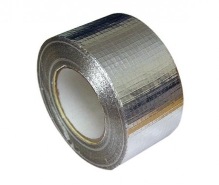 Glassullmatte med tverrstilte fibre av lameller festet i glassfiberarmert alufolie.
