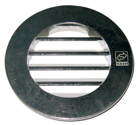 Flexit rist i støpt aluminum med karm 100x100 mm. Med insektsgitter i rustfritt stål.