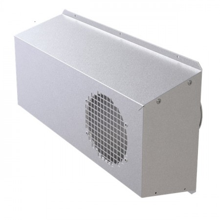 Kombinert boks til avkastluft og uteluftinntak til balansert ventilasjon. Kan enkelt bygges om fra venstre til høyre på inntak og avkast åpninger.