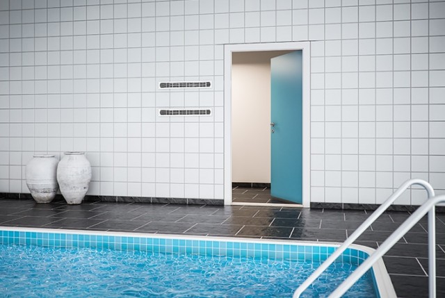 Energieffektiv avfukter som monteres på vegg i svømmebassengets tekniske rom