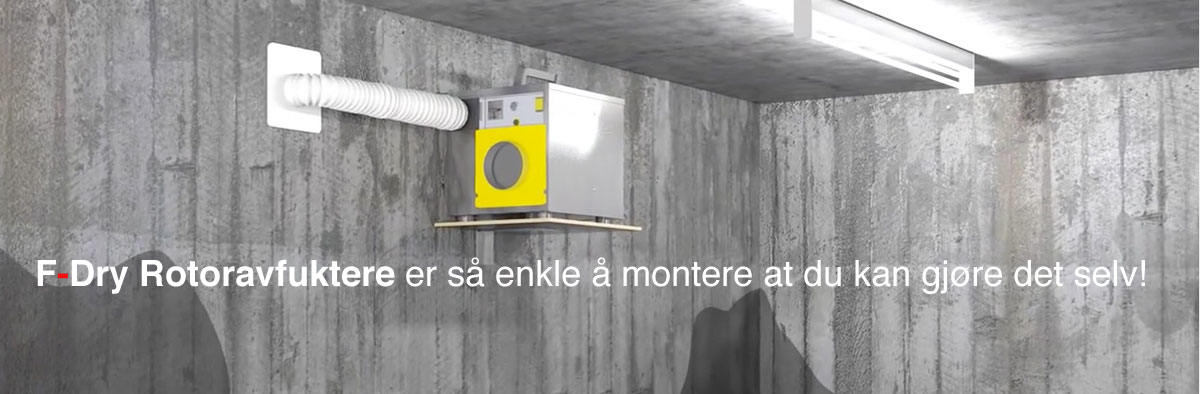 Dette er den enkleste måten å holde fuktigheten i sjakk på. En rotoravfukter arbeider like godt uansett temperatur. Alt du trenger å gjøre er å plassere avfukteren på en hylle og koble til en kanal, for å sende fuktig luft ut. Start avfukteren og tørkingen er i gang!