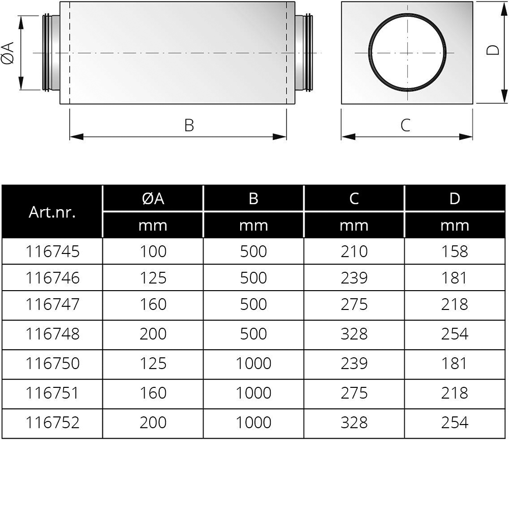 Kvadratisk lydabsorberende lydfelle der egenskapene er avgjørende for utforming og dempningsmaterialet. Lydfellen består av en innvendig mantel i mineralull med en utvendig overflate og mantel i stål. Slangen i kanalsystemet monteres slik at kondensvann ikke samler seg i lydfellen.