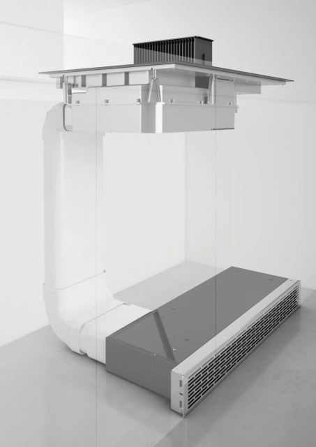 Røros One er et Premium-produkt, og den er et lite teknologisk vidunder. Når du ikke lager mat forsvinner ventilatoren helt ned i platetoppen. Den har lav innbyggingshøyde, bare 19,2 cm (uten glass) og gir maksimal plass i skapene under. Du velger selv om du vil at luften føres rett ut av huset, eller om du ønsker å kjøpe til resirkulasjons-kit slik at lukt absorberes via monoblokkfiltre.