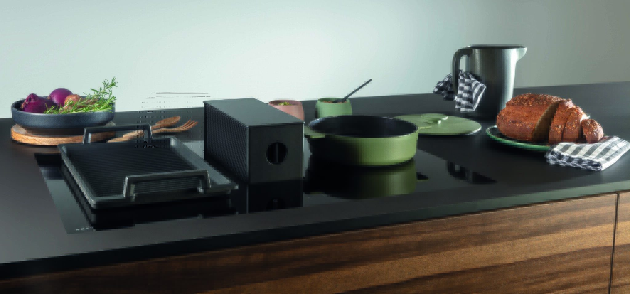Ventilatoren som tilpasser seg kjøkkenet. Hovedoppgaven til en ventilator vil alltid være å fjerne damp, lukt og fett, men ved å velge kombinasjonen av induksjonstopp og benkeventilator tar du kjøkkenet ditt tilbake. Med en diskré og stillegående, men effektiv, løsning ligger alt til rette for å skape drømmekjøkkenet. Kjøkkenet der du både kan leve og lage mat – uten praktiske begrensninger for rommets design.