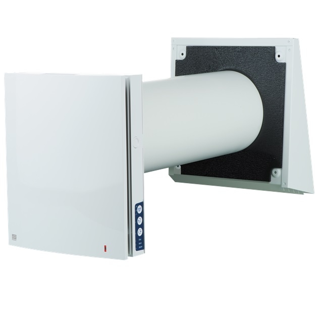 Romventilator Roomie One WiFi V2 gir ventilasjon med varmegjenvinning i deler av boligen eller i enkeltrom. Varmen gjenvinnes fra avtrekksluften i en keramisk varmegjenvinner som samtidig gir temperert og filtrert tilluft. Anbefalt å installere parvis eller med flere, avhengig av arealet som skal ventileres. Integrert WiFi gjør det enkelt å koble sammen flere ventilatorer som kommuniserer trådløst. Enkel igangkjøring, styring og sammenkobling via egen app. Leveres med tilkoblet strømledning og støpsel. Ved tynne vegger kan egne kapper som absorberer deler av lengden benyttes (tilbehør). Mulighet for pollenfilter som enkelt monteres/demonteres før og etter pollensesong. Utvendig kappe i grålakkert aluminium. Kan tilkobles eksterne sensorer. Kompatibel med smarthus-systemer