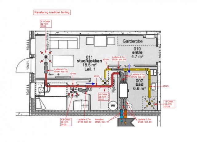 Ventilasjonsanlegget dekker ventilasjonsbehovet innenfor boenheten dersom ikke annet er spesifisert. Prosjekterende innehar sentral godkjenning.