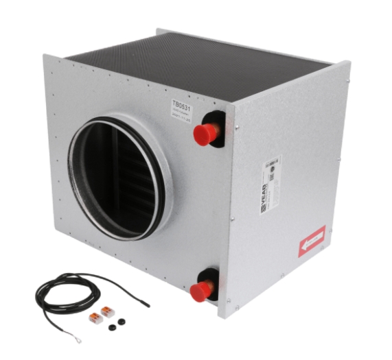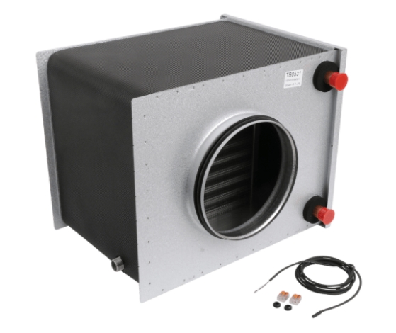 Flexit kjølebatteri har sirkulær kanaltilkobling og vann som energibærer.