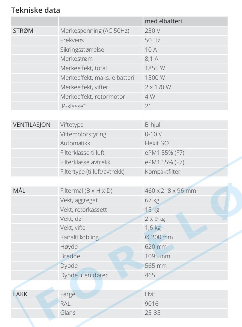 Nordic L6 SW med patentert rotorteknologi. Stage Wheel gir markedets mest energieffektive ventilasjonsaggregat med opptil 95% aggregatvirkningsgrad. Det lave energiforbruket og lokal behovsstyring gir økodesignlabel A+. Utviklet for eneboliger og små næringsbygg i nordisk klima med et arbeidsområde på opp til 600 m3/h, ideelt for boliger opp til 400 m2. Designet for gulvmontering og har justerbare dempeføtter, samt dører på begge sider og koblingsskap på toppen for enkel tilgang og vedlikehold. Dører, vifter og rotor kan lett demonteres, som vil gi en nettovekt på ca. 30 kg og dybde på 465 mm, for enkel inntransport gjennom loftsluke. Aggregatet styres med Flexit GO og kan kompletteres med tilbehør. Innebygd fuktføler og styring for kjølegjenvinning er standard.