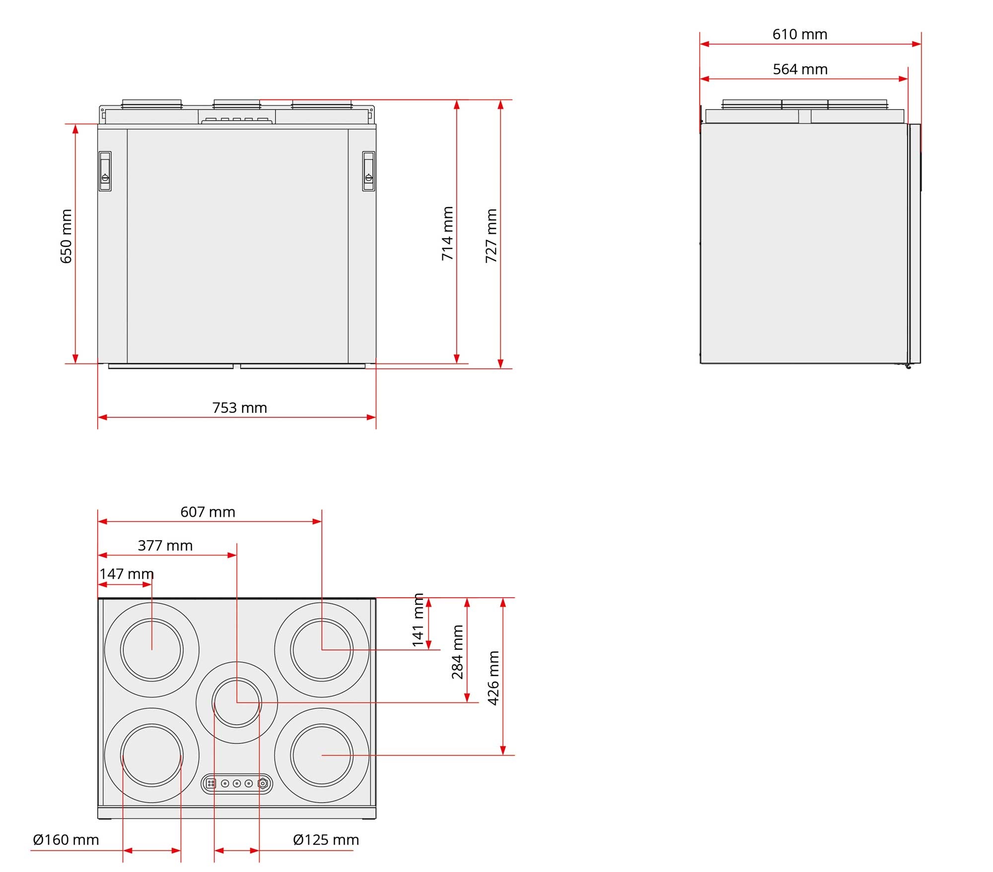 Enkel tilkoblingsmulighet til kjøkkenhette med bypass-løsning. Ventilasjonsaggregatet har høyeffektive roterende varmegjenvinnere, med temperaturvirkningsgrad opp til 85%, og vifter med lavt energiforbruk.