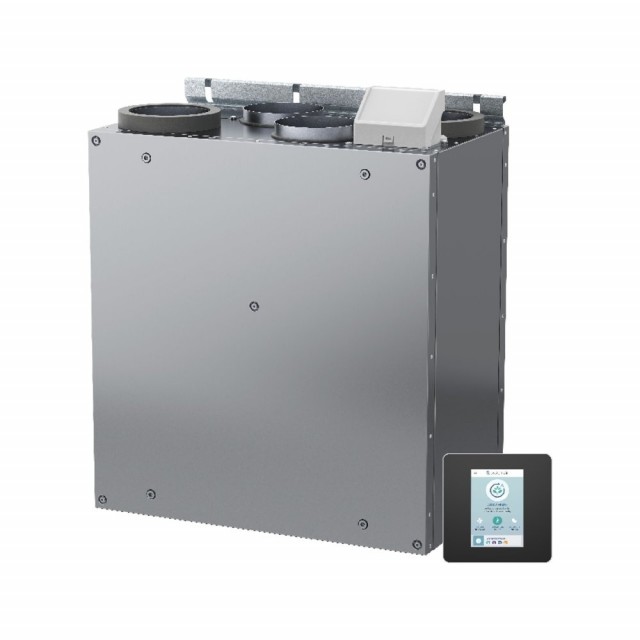 SAVE VTR 100/B leveres komplett med automatikk og separat intelligent SAVE Touch betjeningspanel. Modellen som leveres i dobbeltmantlet og isolert utførelse, og er komplett utstyrt med vifter og filtre. Aggregatet har trinnløs regulerbare roterende varmeveksler og integrert fuktføler som sørger for automatisk behovsregulering av temperatur på tilluften, samt forsering av kapasiteten ved evt. forhøyet fuktnivå. En egen fuktoverføringsfunksjon regulerer fuktoverføring fra avtrekksluft til tilluft. Elektrisk ettervarmebatteri leveres som tilbehør.